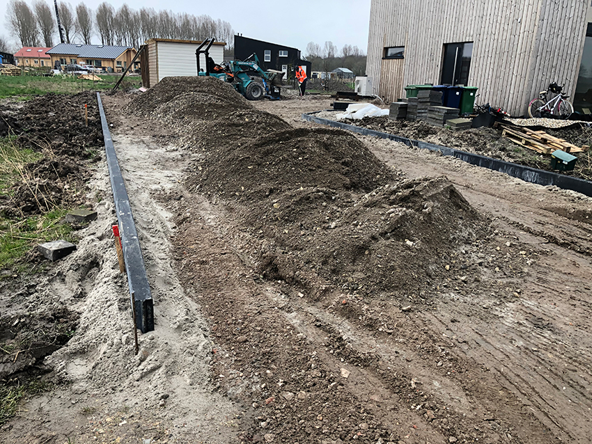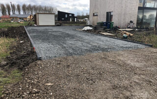 Een goede uitvoering van het grondwerk is de basis van een goede straat. Wij graven de slappe grond af zodat er een goede fundering van zand en gebroken puin gemaakt kan worden, zodat de straat niet of nauwelijks meer verzakt.